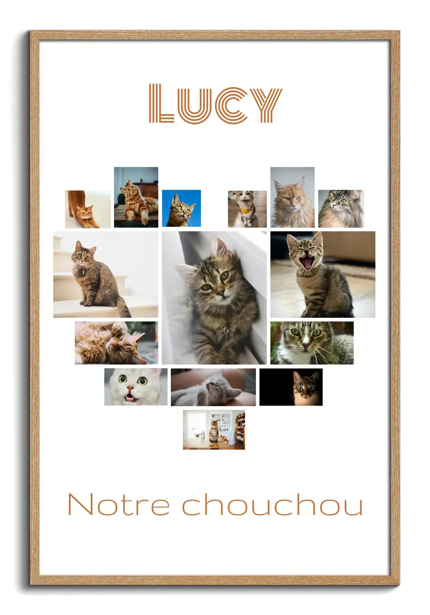 Photos de chat en collage cœur, texte personnalisé: chouchou ou prénom du félin.