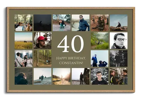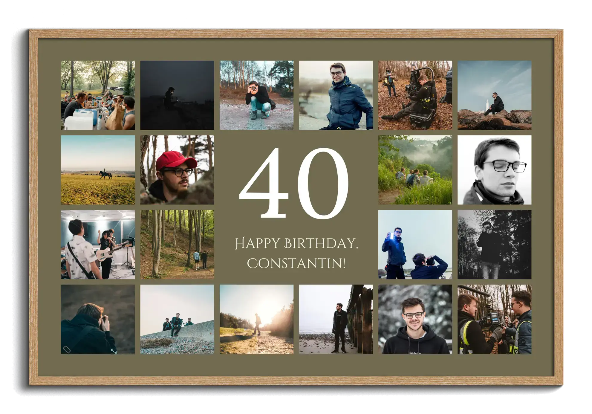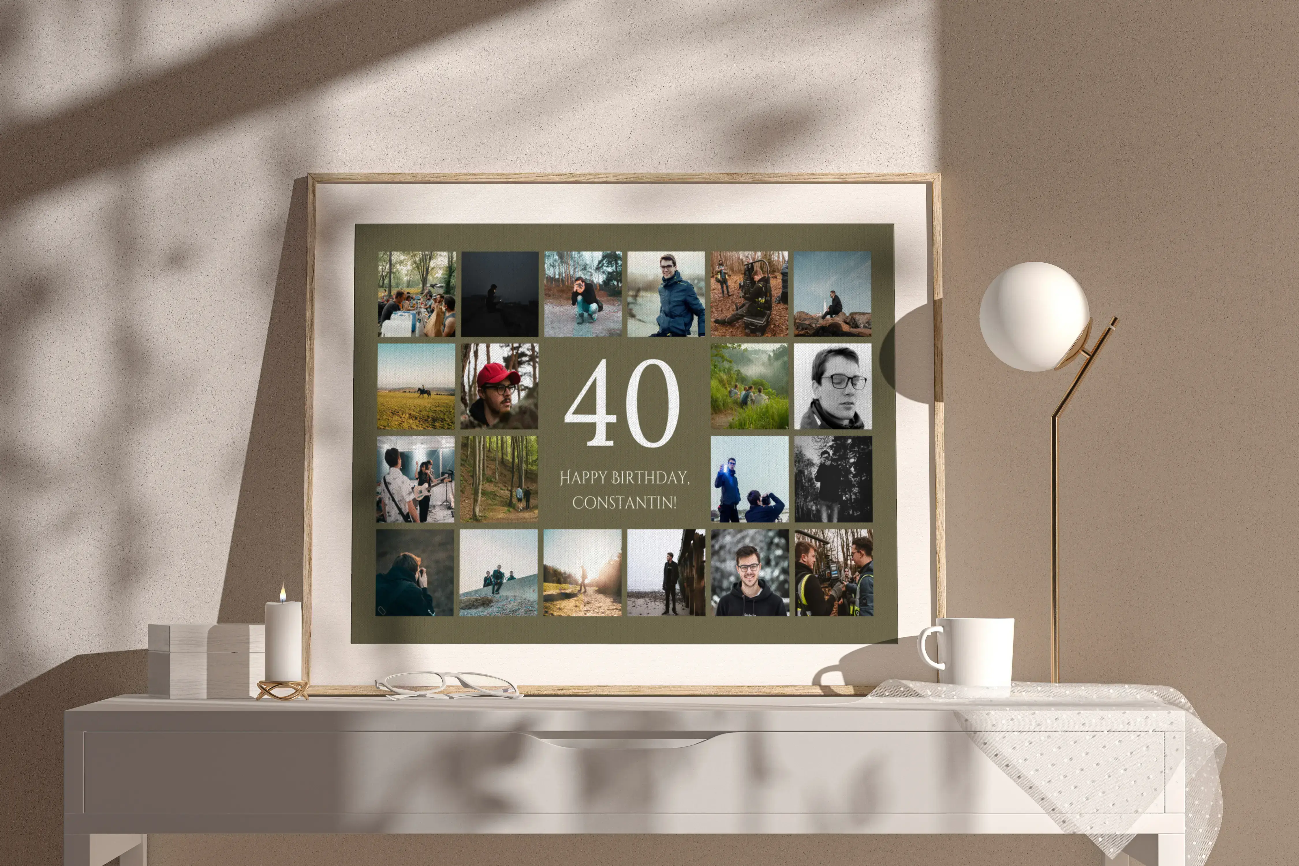 Collage chiffre 40: grand 40 au centre, 20–80 photos. Cadeau 40 ans, noces d’émeraude, entreprise.