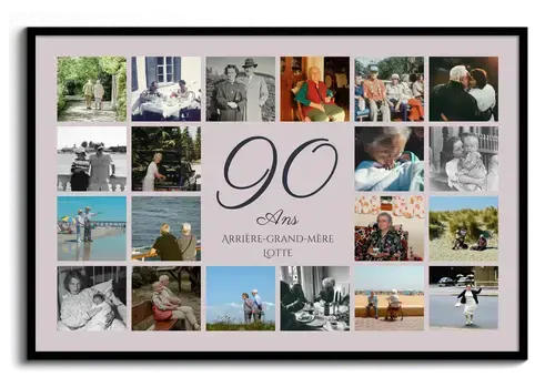 Collage 90 personnalisable avec nom et message: cadeau 90e anniversaire, jubilé, hommage.