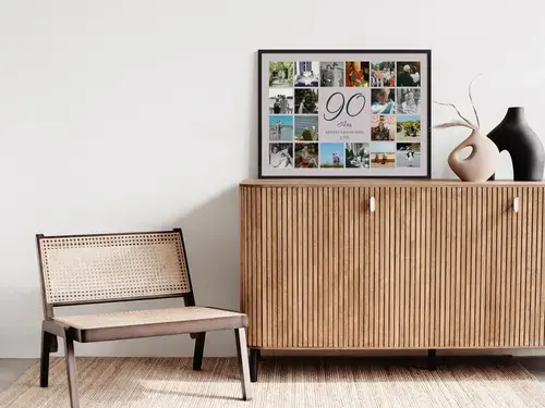Idéal pour un 90e anniversaire, un jubilé, un hommage à un grand-parent, une rétrospective de vie, la fête d’un club ou d’une association qui célèbre 90 ans, une décoration émouvante pour maison de retraite, un cadeau commun de famille.