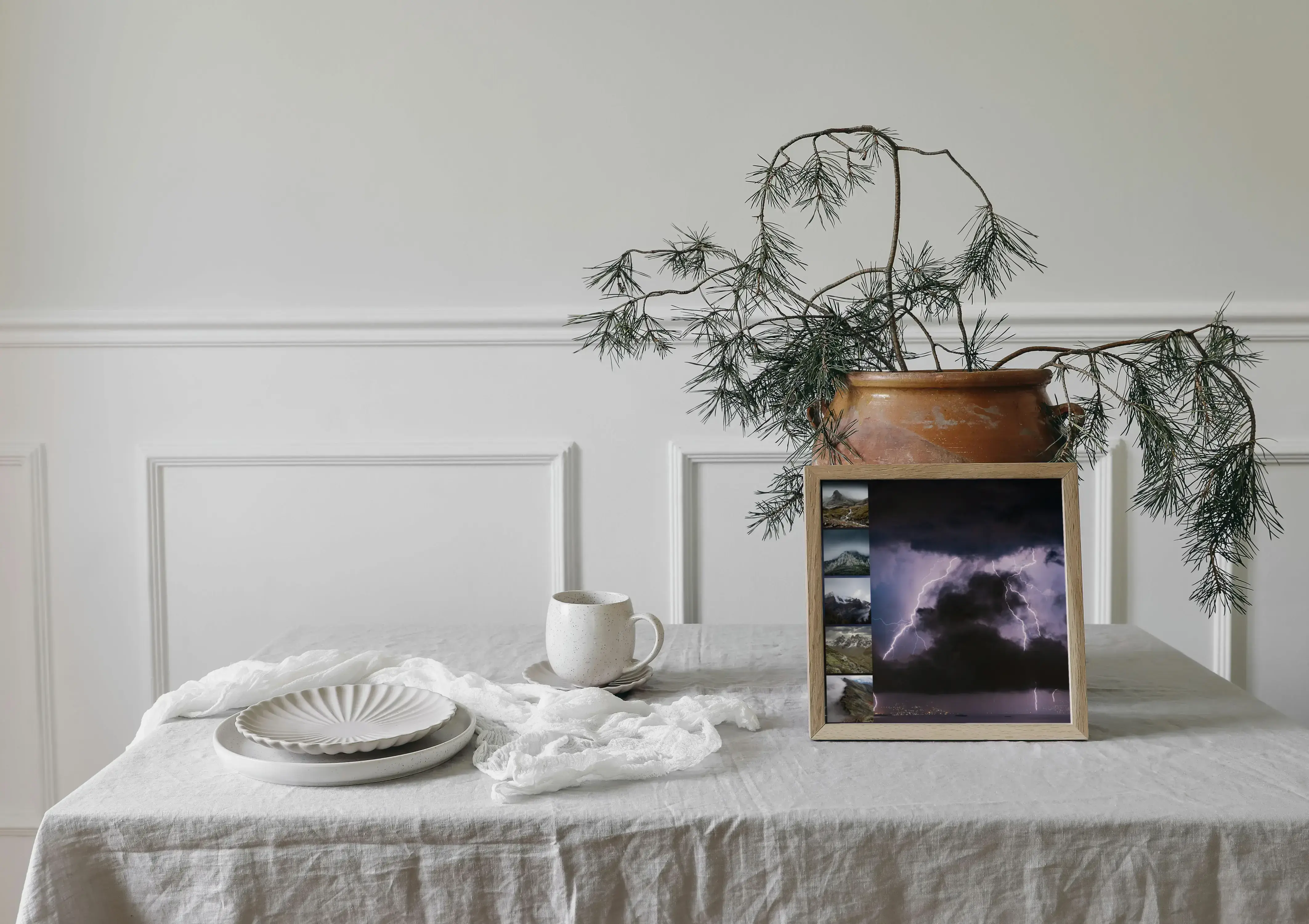 Crée maintenant ta composition murale personnalisée. Ici, cap sur les phénomènes météo: nappes de brume sur champs, côte, forêts et montagnes, et orages au ciel dramatique. Assemble des clichés de nature, paysages et faune, puis fais-les imprimer en qualité premium avec des mises en page pensées pour sublimer chaque détail.