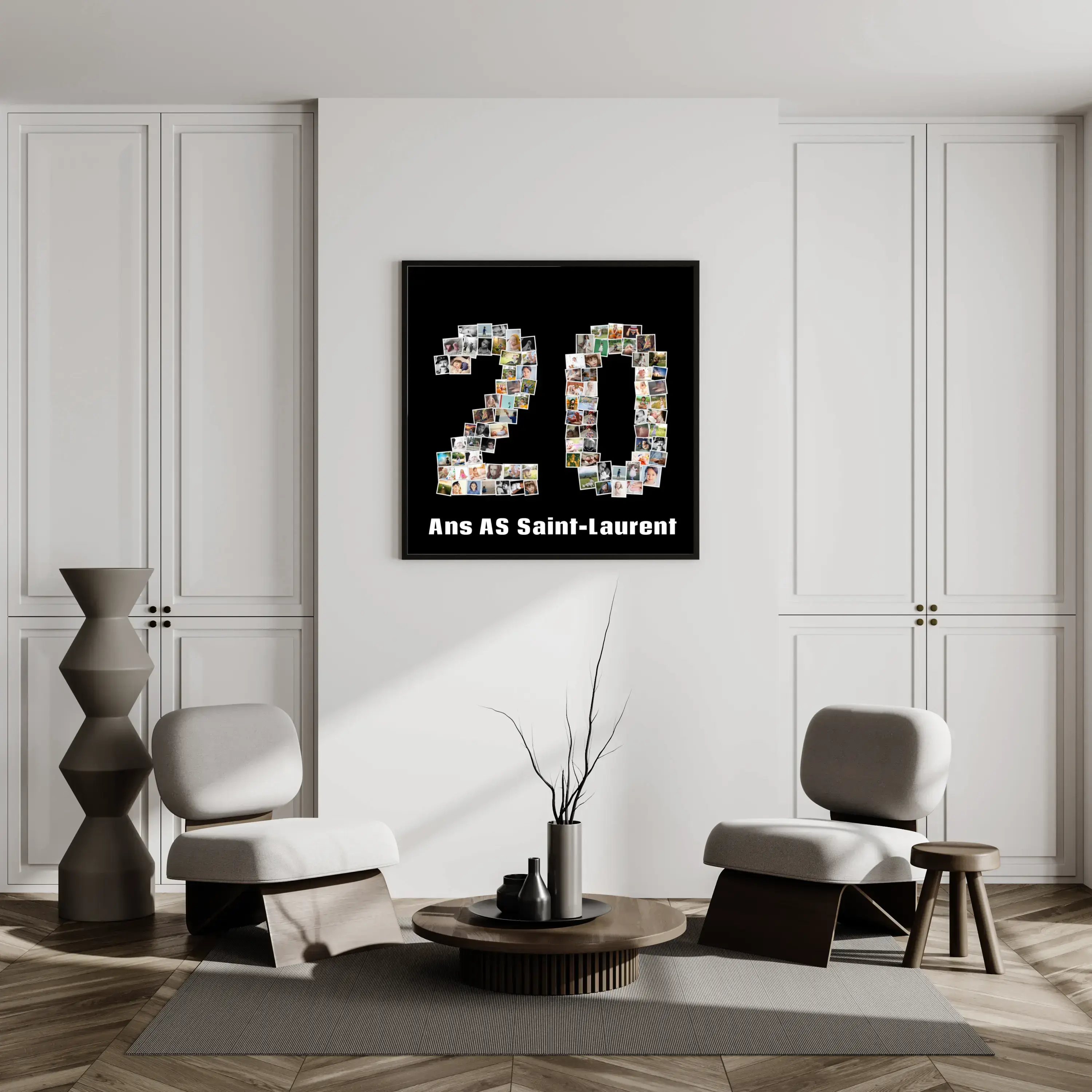 Créez votre propre chef-d'œuvre personnalisé avec notre option de collage photo unique. Imaginez une mosaïque formant le chiffre '20', composée de vos propres clichés. Que ce soit pour fêter un anniversaire marquant, un jubilé professionnel ou un anniversaire de mariage, vous avez la liberté de choisir entre 1 et 100 de vos photos préférées pour créer un effet saisissant.
