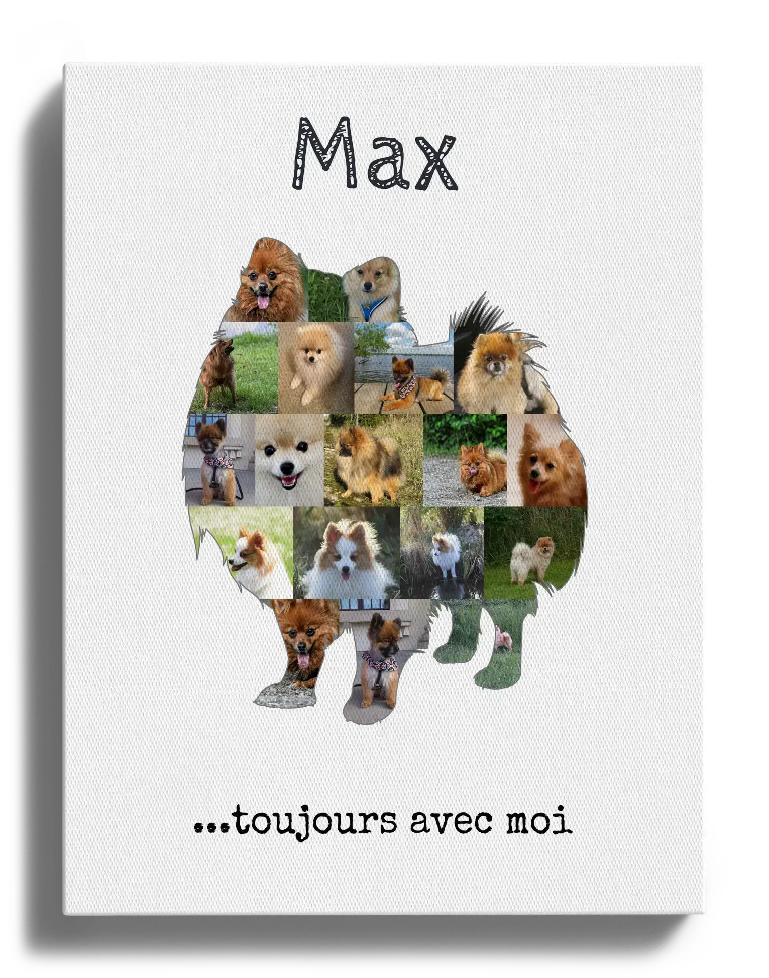 Créez un hommage unique pour votre Spitz avec des photos et texte personnalisables.