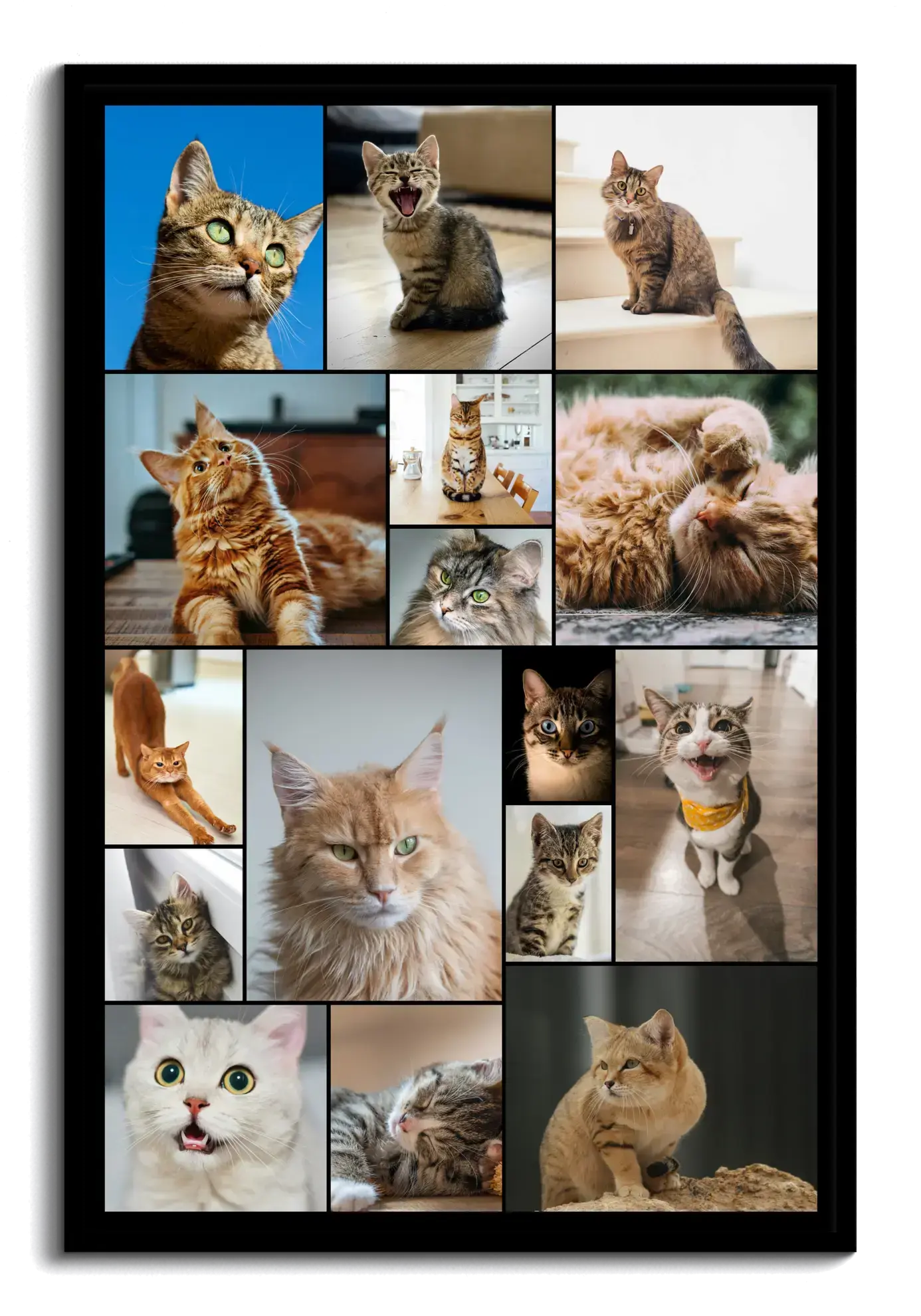 Crée maintenant. Transforme les plus belles photos de ton chat en une création unique: assemble clichés de siestes, jeux et moustaches dans des modèles cœur, grille, texte ou chiffres, ajoute des légendes personnalisées comme Un cœur à quatre pattes, choisis les couleurs et compose un souvenir tendre et stylé.