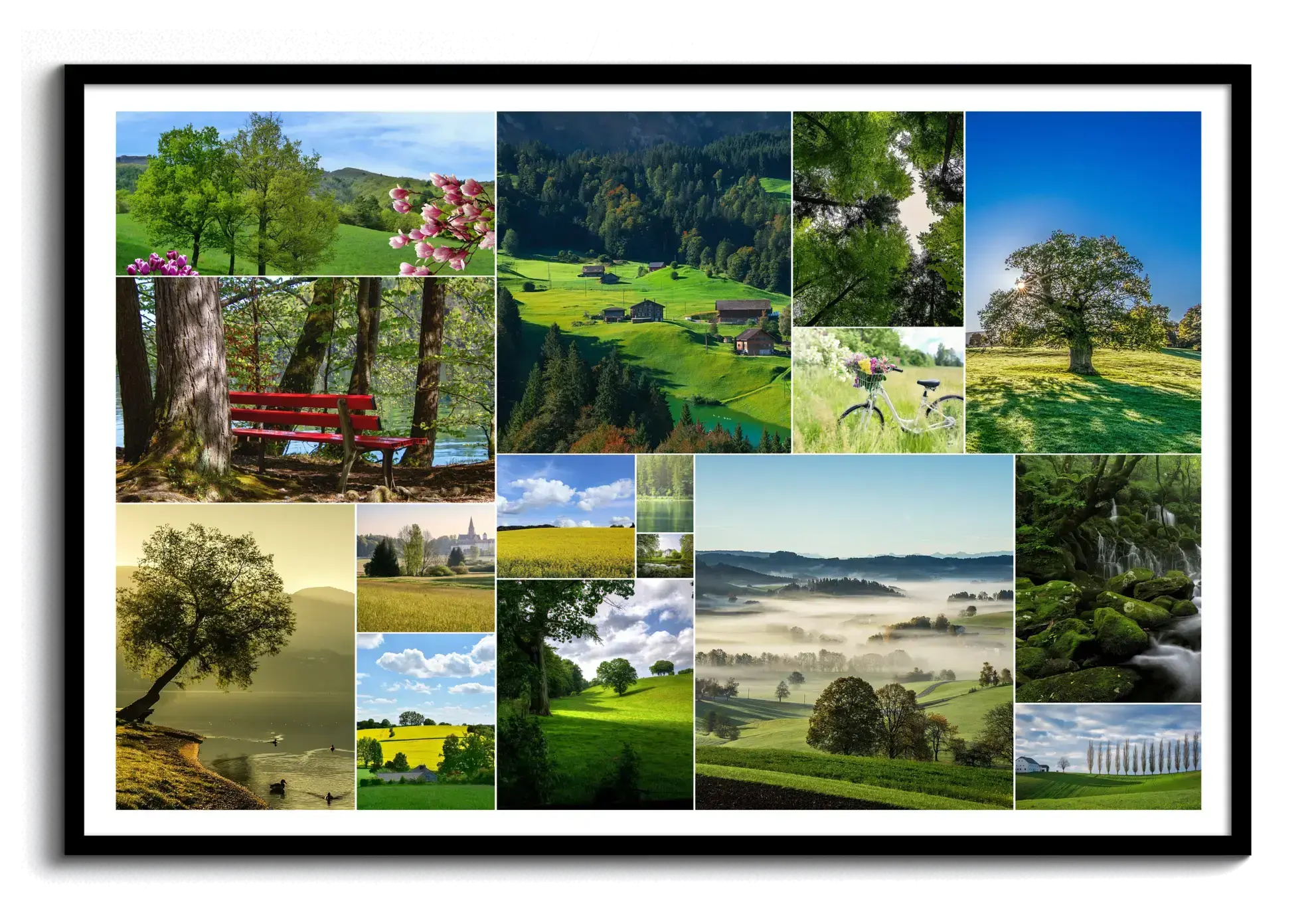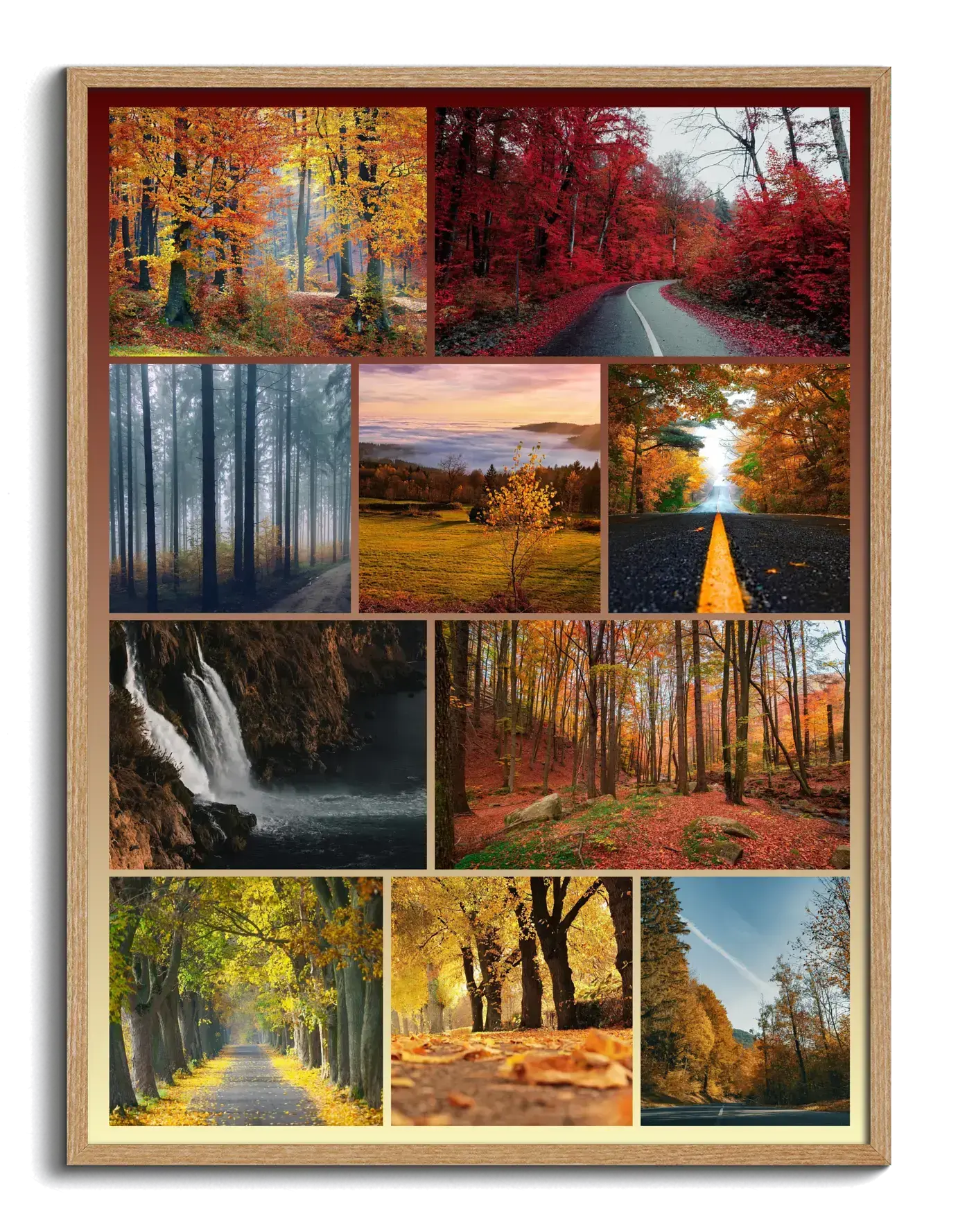 La beauté des paysages en quatre saisons, sublimée en collages imprimés premium.