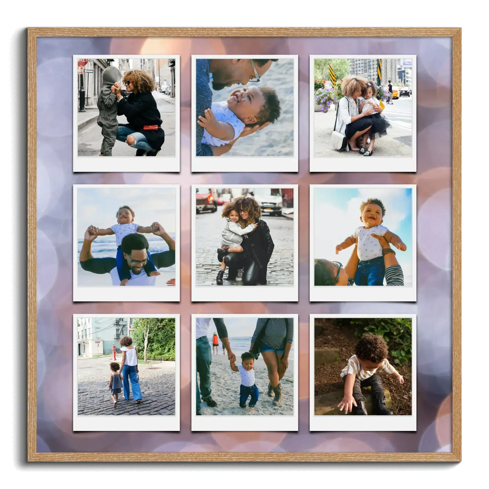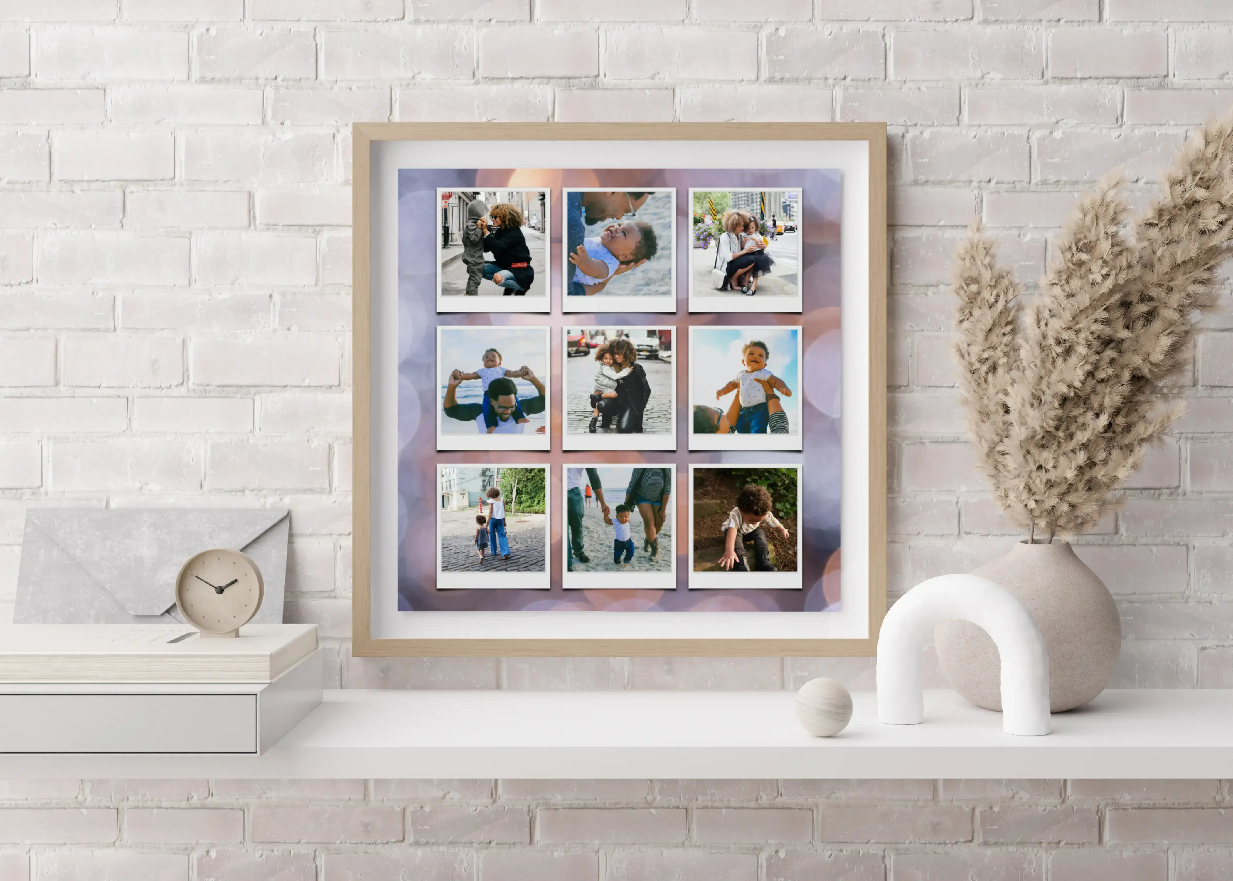 Côté création: grilles classiques, cœur, texte et chiffres, style Polaroid, rangées, fond photo, placement libre, images mises en avant au centre. Réglez marges, espacements, coins, alignements, effets photo, fonds unis ou texturés, et insérez vos messages exactement comme souhaité.