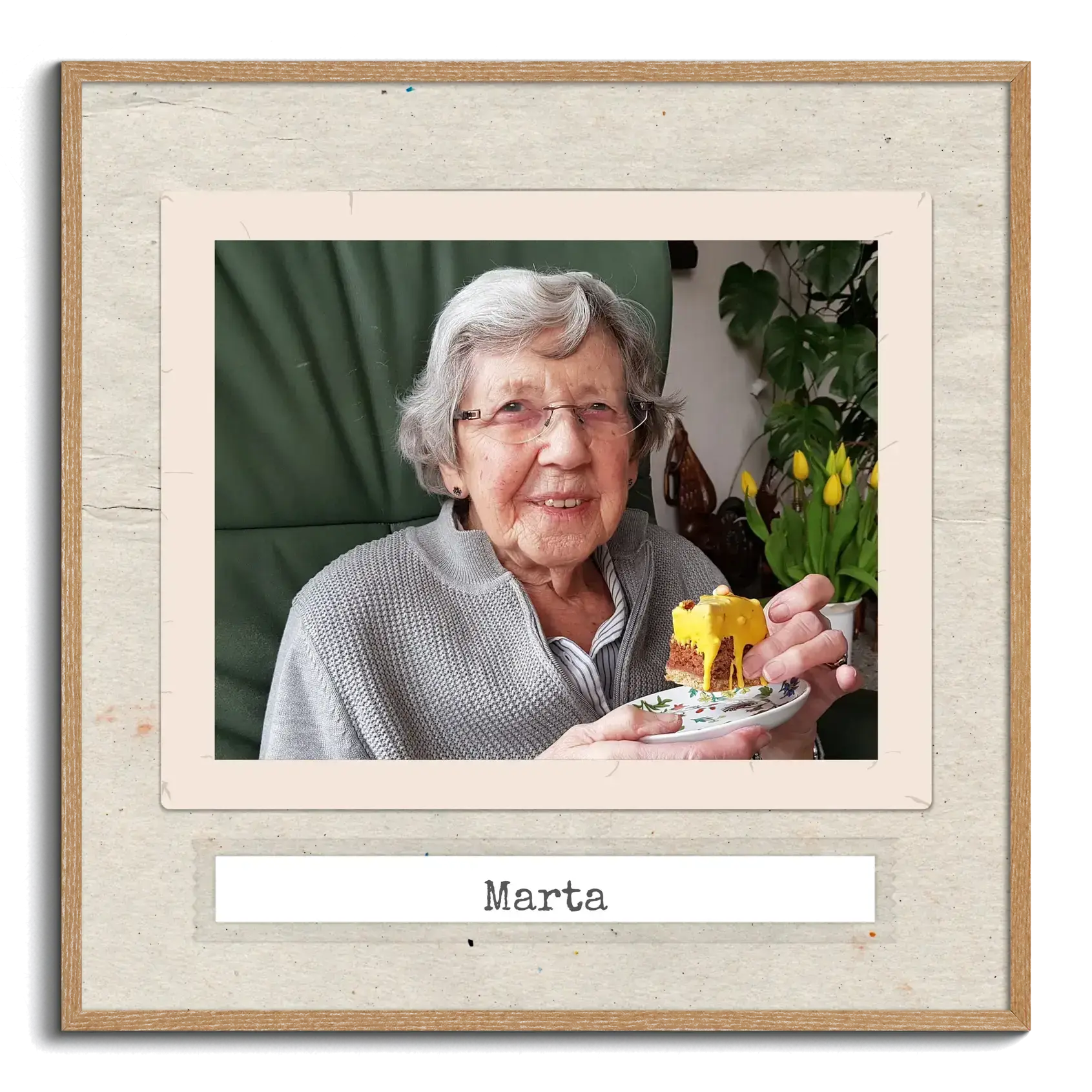 Créez un souvenir inoubliable avec notre collage photo hautement personnalisable. Ce modèle, conçu dans un style rétro avec une bordure beige, illustre un portrait hommage, parfait pour une cérémonie funèbre. Intégrant le nom cher de Marta, il offre une élégance intemporelle, idéale pour les familles voulant honorer un proche.