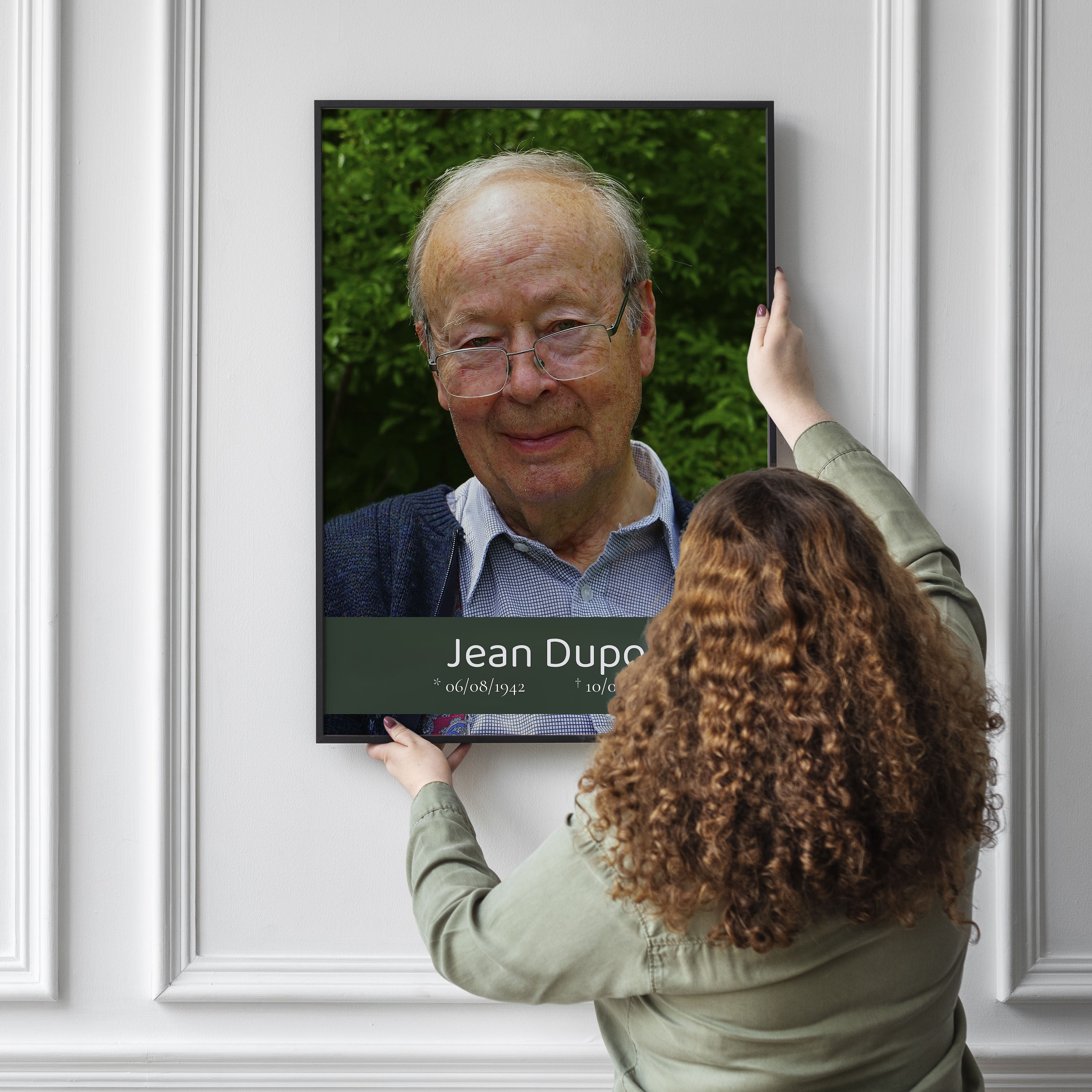 Créez un hommage élégant avec des portraits personnalisés pour des souvenirs mémorables.